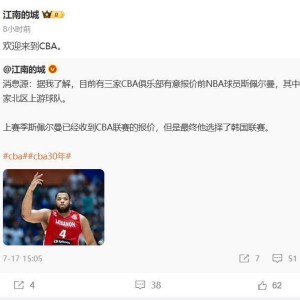 根据媒体人“江南的城”消息称,北京首钢队接近和前NBA内线球员斯佩尔曼完成签约,如果顺利的话球队近期将会进行官宣。上赛季...